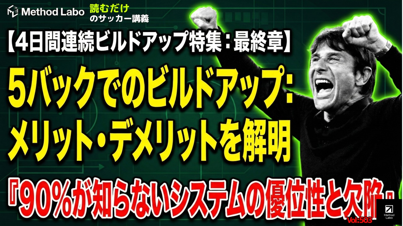 5バック・ビルドアップの深掘り:安全性を最大化する構造のメリット・デメリット 2026 3/07 未分類 2026年3月7日 このページをご覧になるにはログインが必要です。 未分類 この記事が気に入ったら フォローしてね! Follow @itasaca14 4バック・ビルドアップの深掘り:バランス型構造の強みと落とし穴 関連記事 4バック・ビルドアップの深掘り:バランス型構造の強みと落とし穴 2026年3月6日 【サッカー講義】2バック・ビルドアップの深掘り 2026年3月4日 【サッカー解説】3バックの中央に位置する選手の名称と役割 2026年3月3日 【サッカー講義】名将たちが残した普遍の原則とは何か 2026年2月26日 【サッカー講義】レストディフェンス重視設計とは何か? 2026年2月23日 2025-26 シーズンのアーセナル:完成へと近づくアルテタ・フットボール 2026年2月22日 1stDFが迷った時の撤退という決断:個で奪う力とチームで守る設計 2026年2月14日 【サッカー講義】1stDFが迷うと守備は崩れる:迷わせない設計と爆発力プレスを生むチーム守備の原則 2026年2月13日 コメント コメントする 返信をキャンセルする。コメントを残すにはログインしてください。 上に表示された文字を入力してください。 Δ