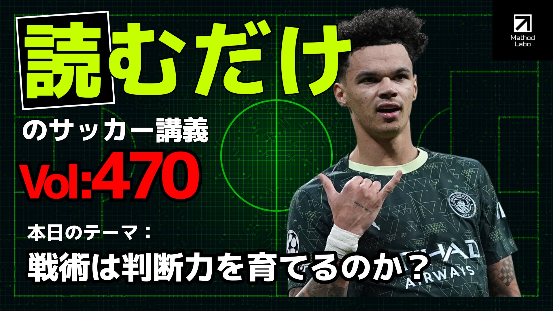 その理由を他者に説明したり、自分で納得したりする際に、戦術用語や概念が必要になります。つまり戦術とは、プレーの「結果」を説明するためのものであり、プレーの「原因(判断力)」そのものを育てるものではないのです。